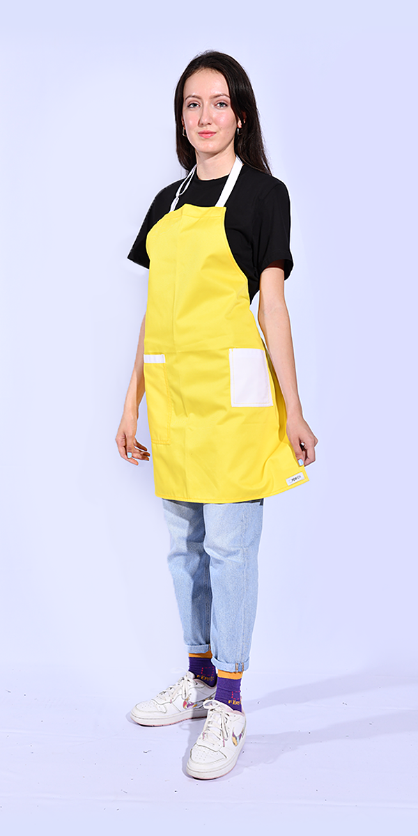 In stock now, we have our latest model, which is crafted with Oriental motif details, hence its name. Apart from the front layer, this model also features a lining layer on the back. It has two pockets at the waist that can be used for small items or a phone. It’s suitable for various work environments. The apron can be cleaned at 30 degrees after use.